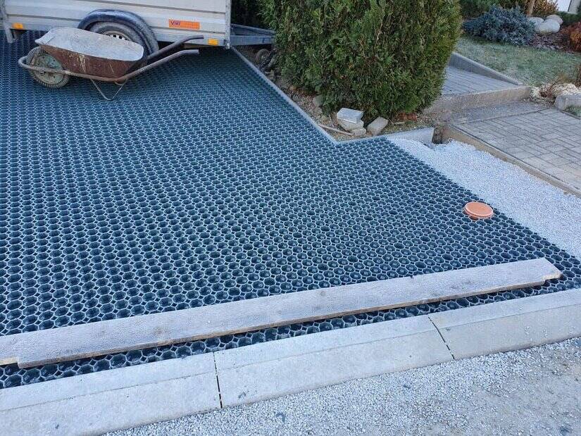💡 Vďaka šesťuholníkovej štruktúre drží povrch rovný, neprepadá sa a zvládne bežný pohyb osôb, bicyklov aj občasný prejazd osobného automobilu.