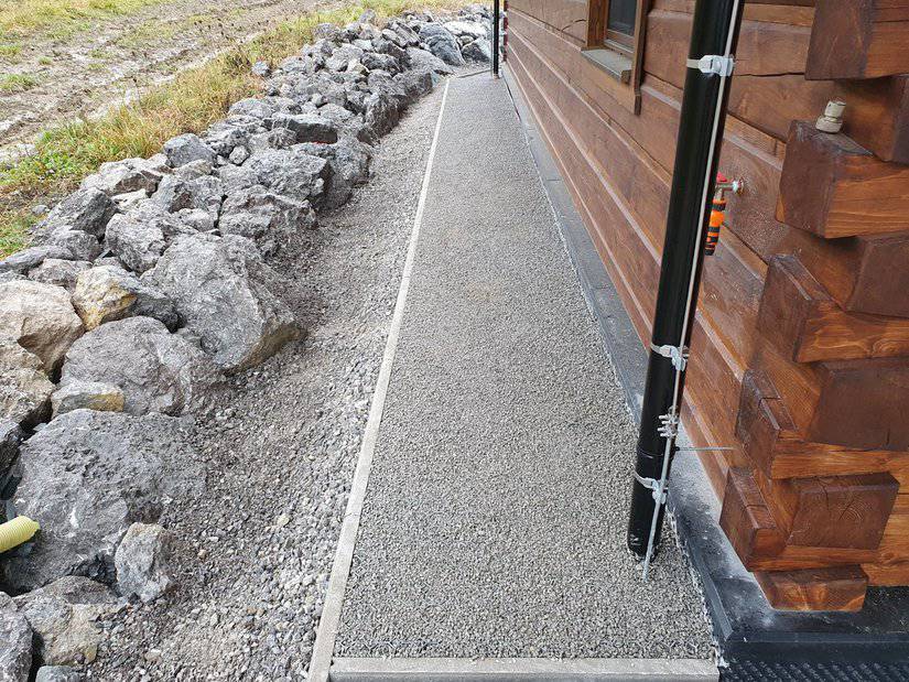 Vďaka výške 4 cm výplňovej bunky je možné chodník vyplniť štrkom, ktorý dobre odvádza vodu a zároveň sa nevyplavuje. Výsledkom je bezpečný, nešmykľavý povrch, po ktorom sa dá chodiť aj po daždi – bez blata pri stenách domu.